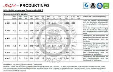 - M 416: Für die Verwendung bei ausgewogenem Eiweißgehalt des Grundfutters und grasbetonter Fütterung.